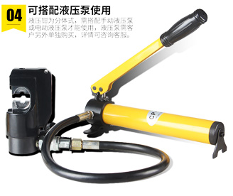 6、分離式壓接鉗的特性:可采用手動(dòng)式、電動(dòng)式和汽油發(fā)動(dòng)機(jī)單動(dòng)式液壓油泵浦;規(guī)格小、很輕,非常合適在高處和室內(nèi)空間窄小的地區(qū)工作 ;磨具購(gòu)買(mǎi):同EP-431、EP-510C;