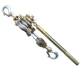 緊線器是在輸電線路鋪設施工現場做為繃緊導線用的。應用時先把緊線器上的鋼絲繩或鍍鋅鐵線松開,并固定不動在橫擔上,用夾線鉗夾住導線,隨后擰動專用型板手。因為棘爪的防大逆轉功效,慢慢把鋼絲繩或鍍鋅鐵線繞在棘輪扳手滾桶上,使導線縮緊。把縮緊的導線固定不動在絕緣子上。隨后先松開棘爪,使鋼絲繩或鍍鋅鐵線松開,再松開夾線鉗,最終把鋼絲繩或鍍鋅鐵線繞在棘輪扳手的滾桶上。